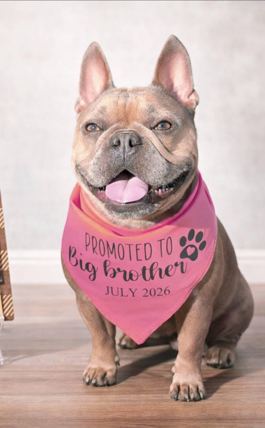 Celebrate your growing family with the cutest helper of all—your pup! Our “Promoted to Big Brother” dog bandana is the perfect way to announce your pregnancy and include your furry best friend in the excitement. Add your custom date for a truly personal touch that makes your announcement unforgettable.