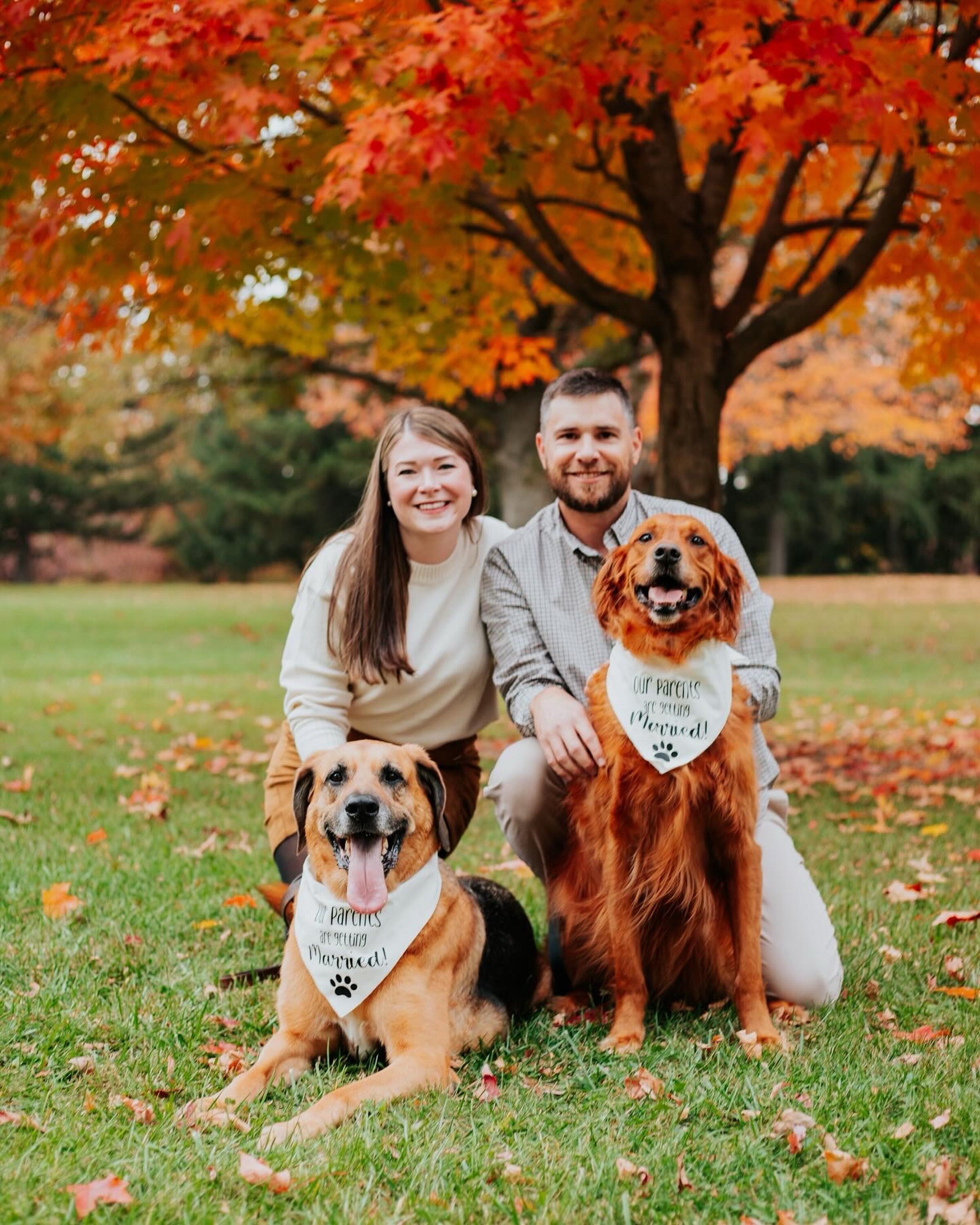 Announce your upcoming wedding to your friends and family with this cute dog bandana. Choose from multiple styles and colors.