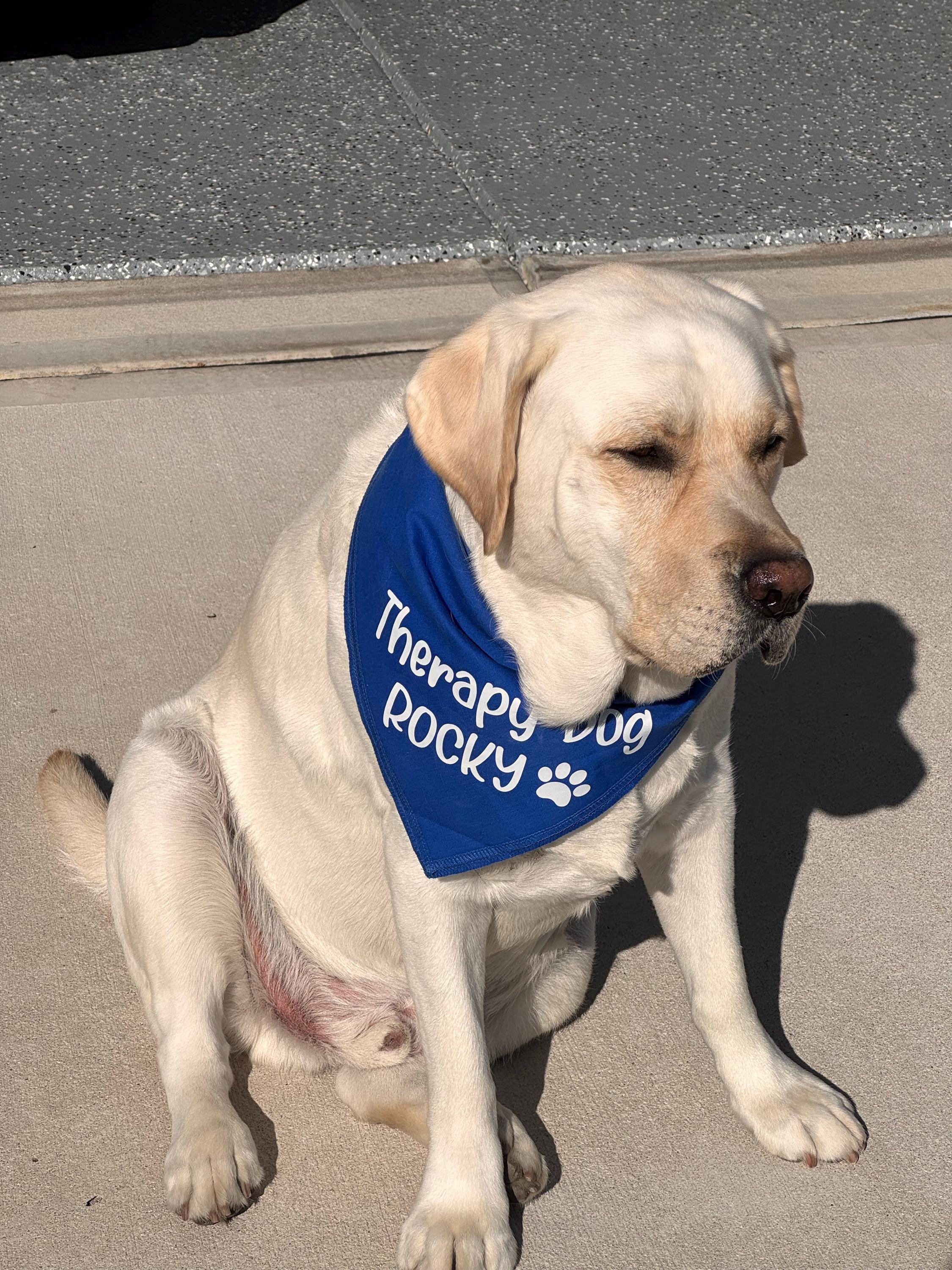 By donning this therapy dog bandana, you're not only accessorizing your pup, but also raising awareness about the importance of therapy dogs and their ongoing training. Join the community of compassionate dog owners who are bound by a shared goal of offering comfort and support to those in need.