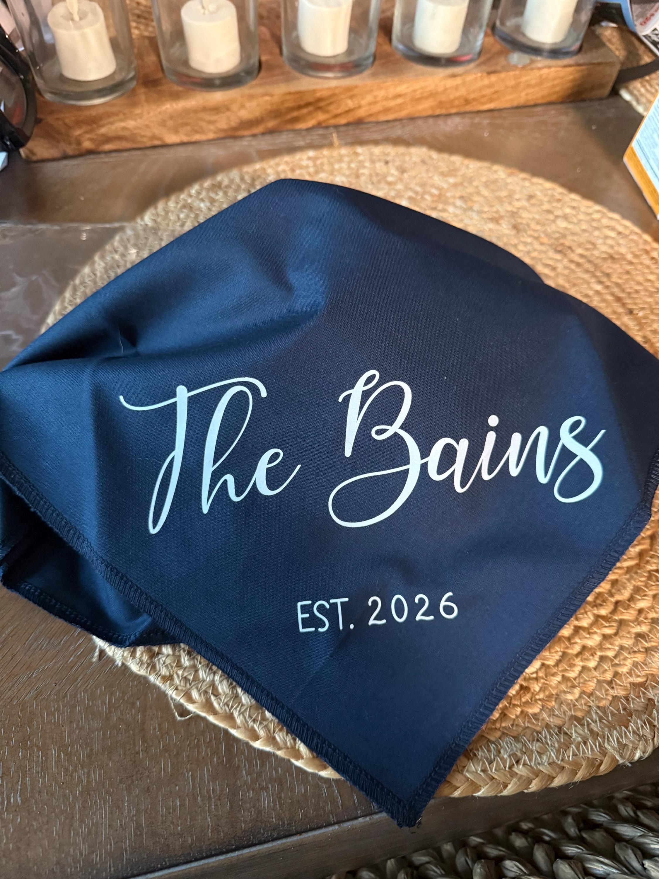 Celebrate your furry family member in style with this personalized dog bandana featuring your last name and established year. Perfect for weddings, engagements, anniversaries, or welcoming a new pup into the family, this custom bandana makes your dog part of every special moment.