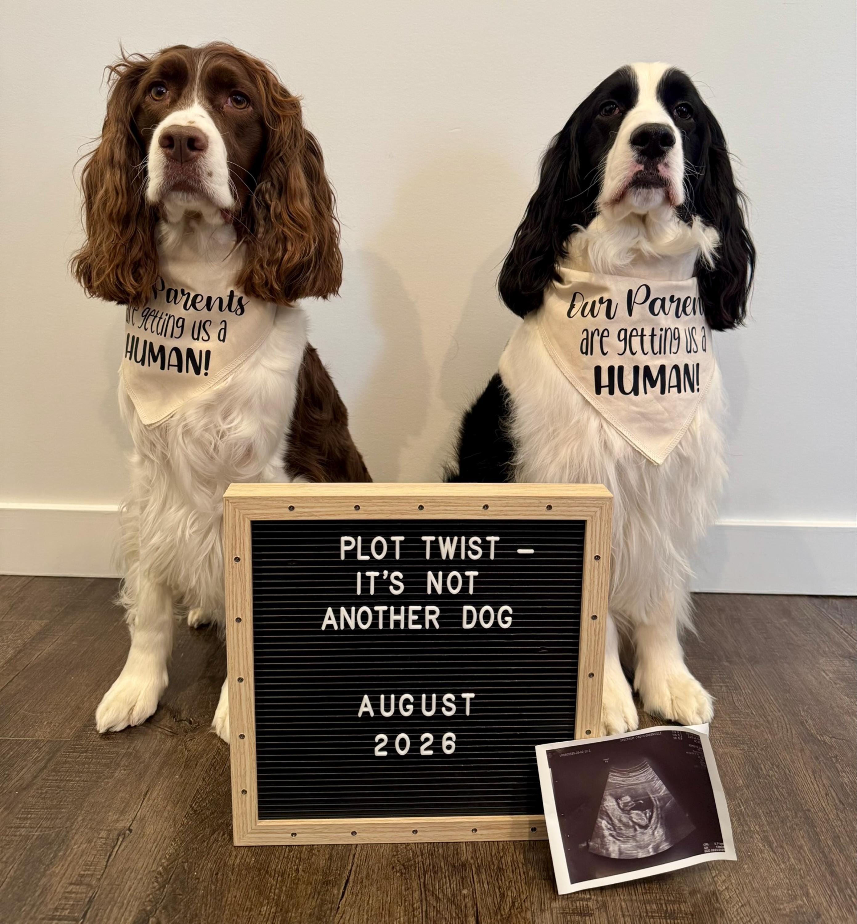 Because before the baby arrivesโฆ the dogs need to make the announcement official! ๐พ๐